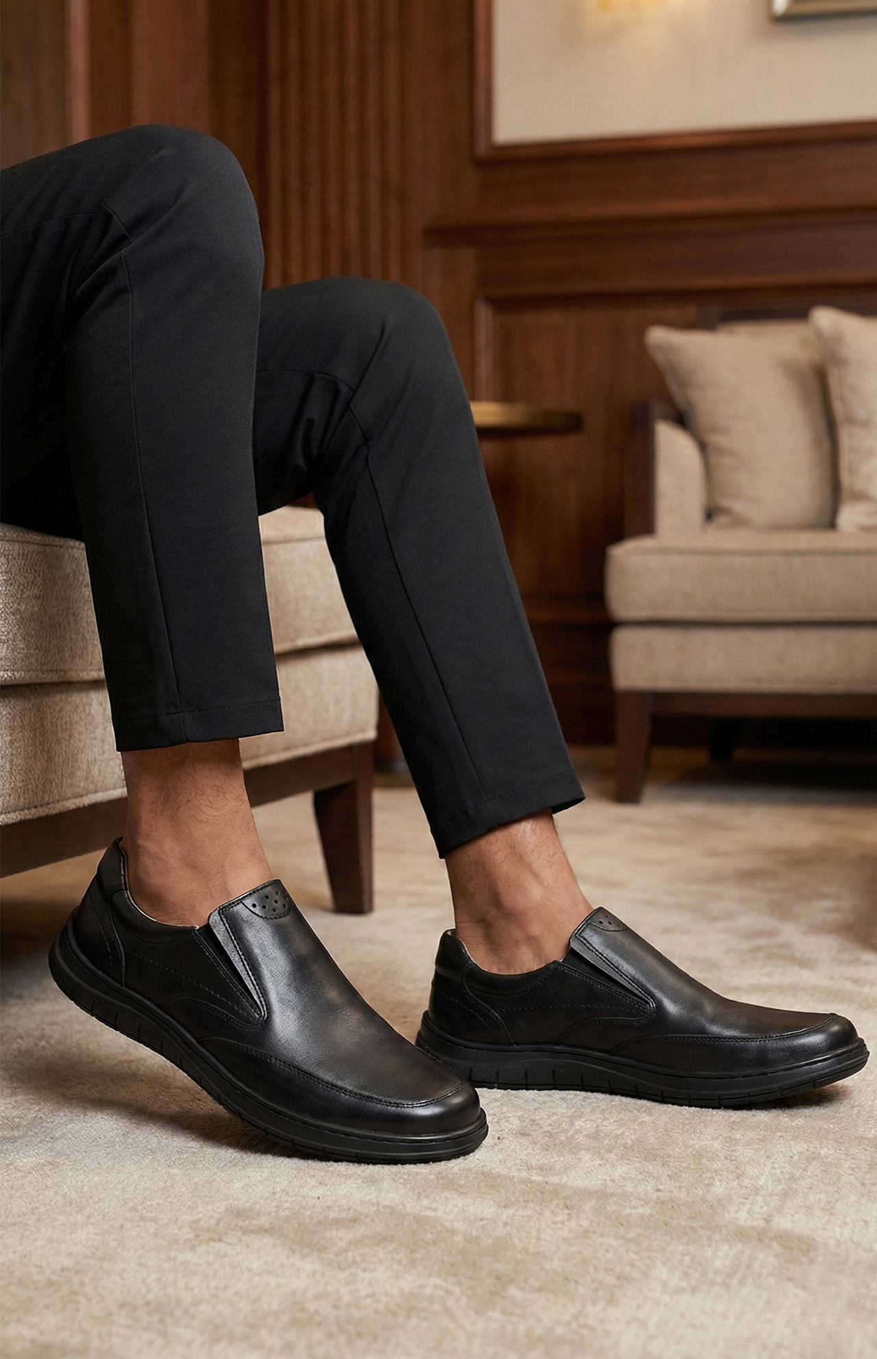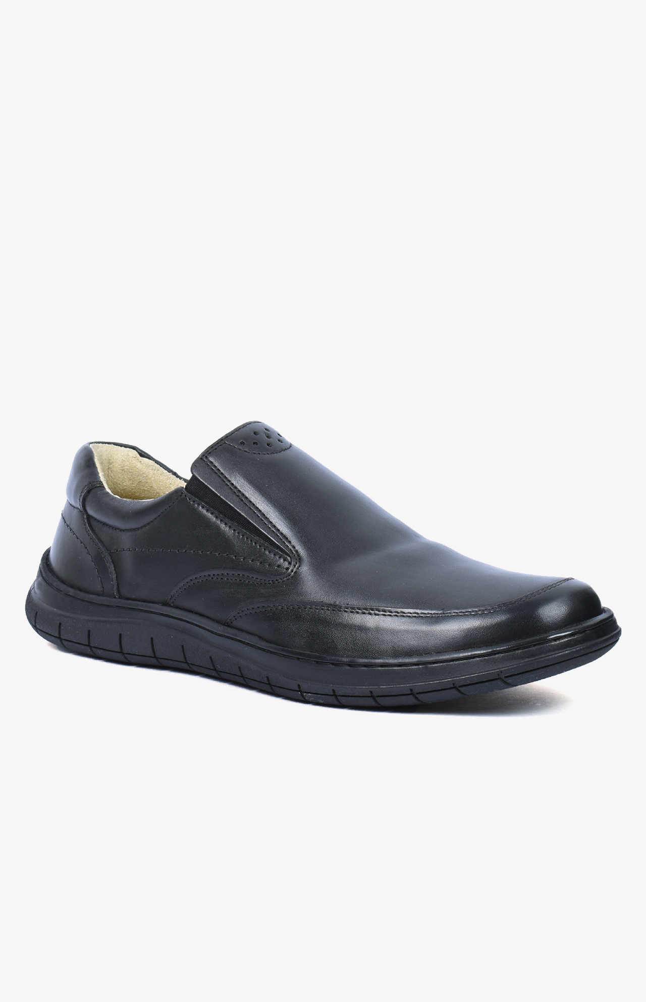 Mocassin orthopédique SOFTWALK pour homme en cuir noir, sans lacets, ultra souple et léger, pensé pour une marche confortable et sans effort toute la journée.